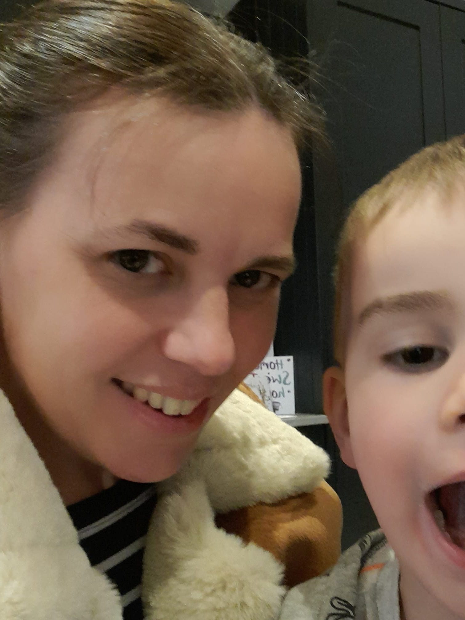 “What did you do?” I asked suspiciously. I was having a difficult moment just before and this was the encouragement I needed, but it did seem to come out of nowhere. “Did you bring down your bedroom curtains again?” I pulled him onto my lap and gave him a cuddle. “I love you, even if you did do something naughty. I love you, too!”